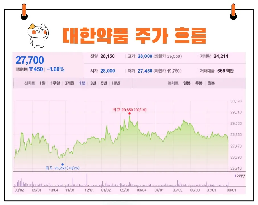 "투자는 불확실성을 안고 가는 게임"이라는 말처럼, 대한약품의 주가 역시 단기적인 변동성에 대한 리스크를 고려하면서 장기적인 성장 가능성을 주시하는 전략이 필요할 것입니다.