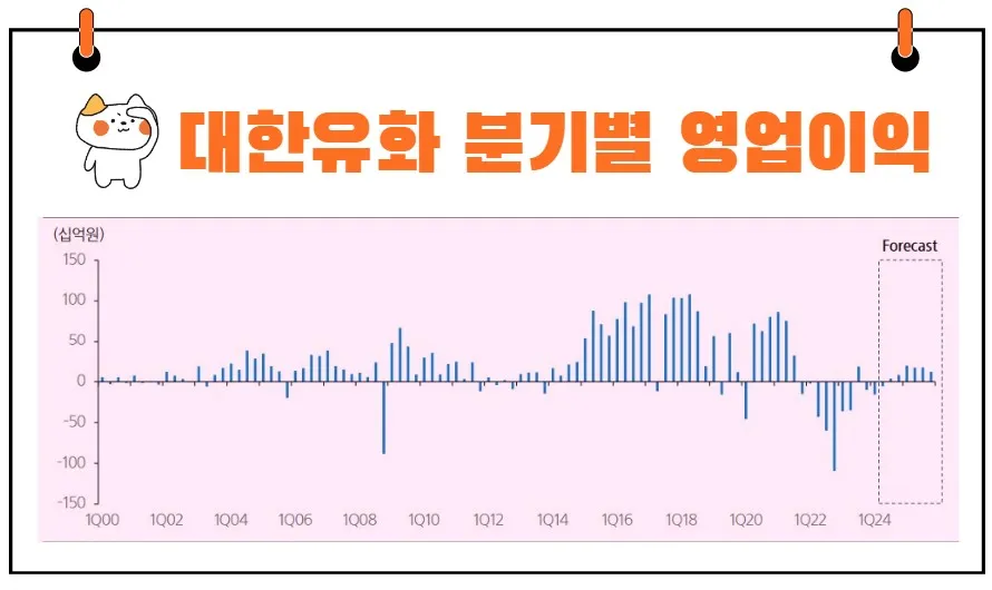 3분기에 대한유화는 +40억원의 영업 이익을 기록하여 흑자 전환을 기대하고 있습니다.