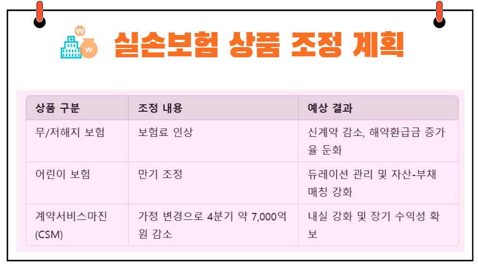 - 상품 구조 조정: 무/저해지 보험료 인상 및 어린이 보험 만기 조정.