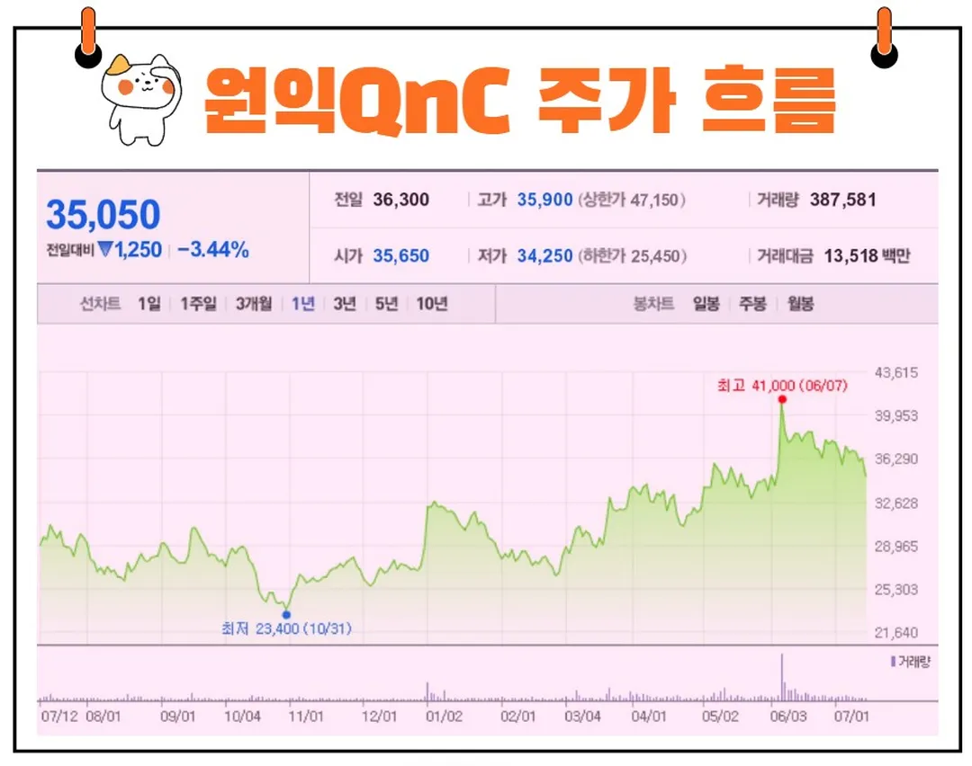 원익QnC의 지난 1년간 주가 흐름은 전반적으로 우상향 하는 모습을 보여주고 있습니다.