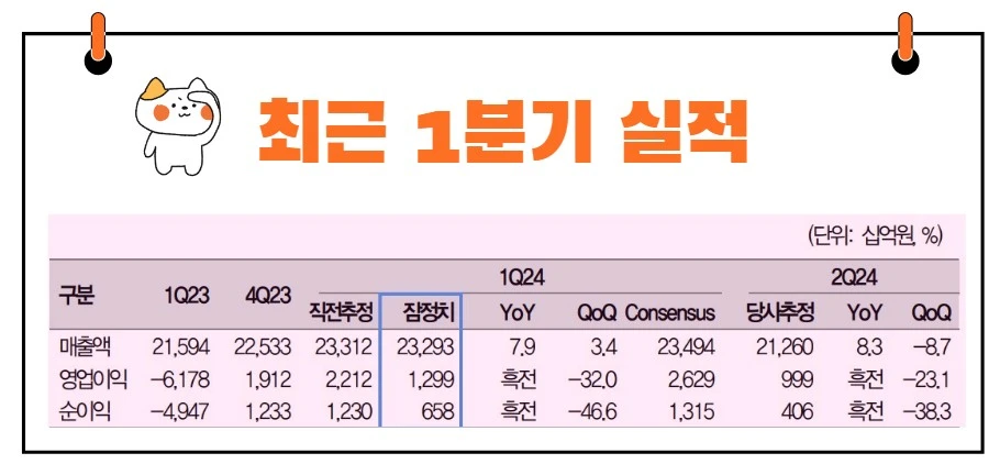 최근 실적 발표를 통해 시장기대치에 못 미치는 결과를 발표하며 주가에 부정적인 영향을 미치기도 했죠.