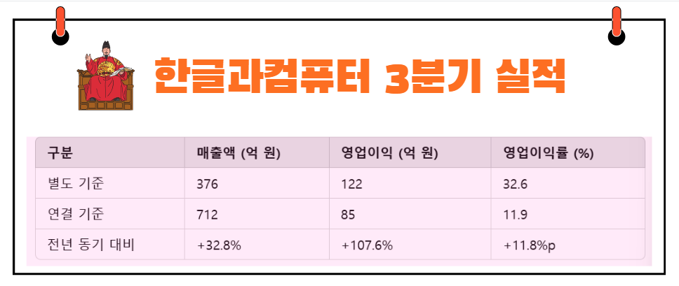 한컴의 2024년 3분기 실적은 기대 이상의 성과를 보였습니다.