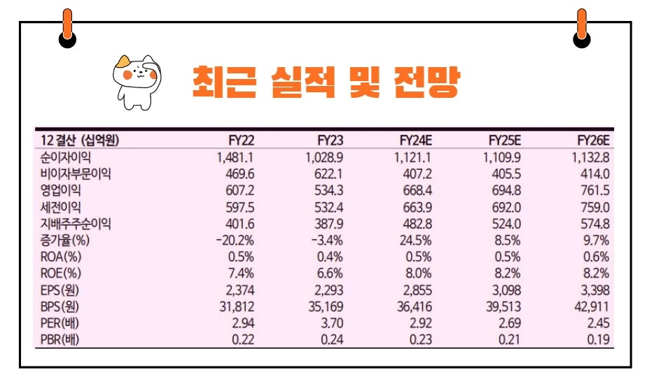 약간의 하락이 있었으나, 회사의 NIM 개선 노력이 가시화되고 있다는 점에서 긍정적입니다.
