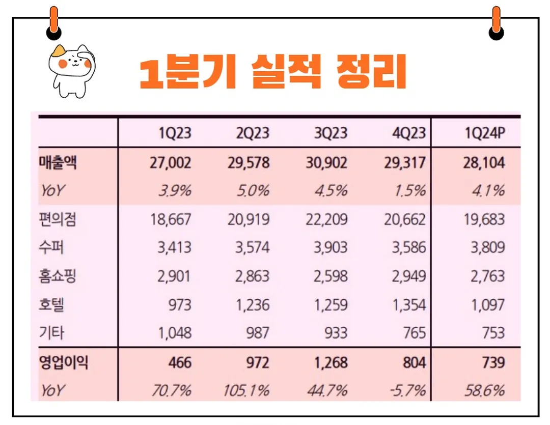 최근 실적발표를 통해 편의점업은 물론 슈퍼 사업에서도 준수한 성장을 거둬 투자자들에게 관심을 받고 있습니다.